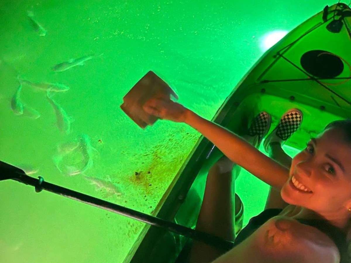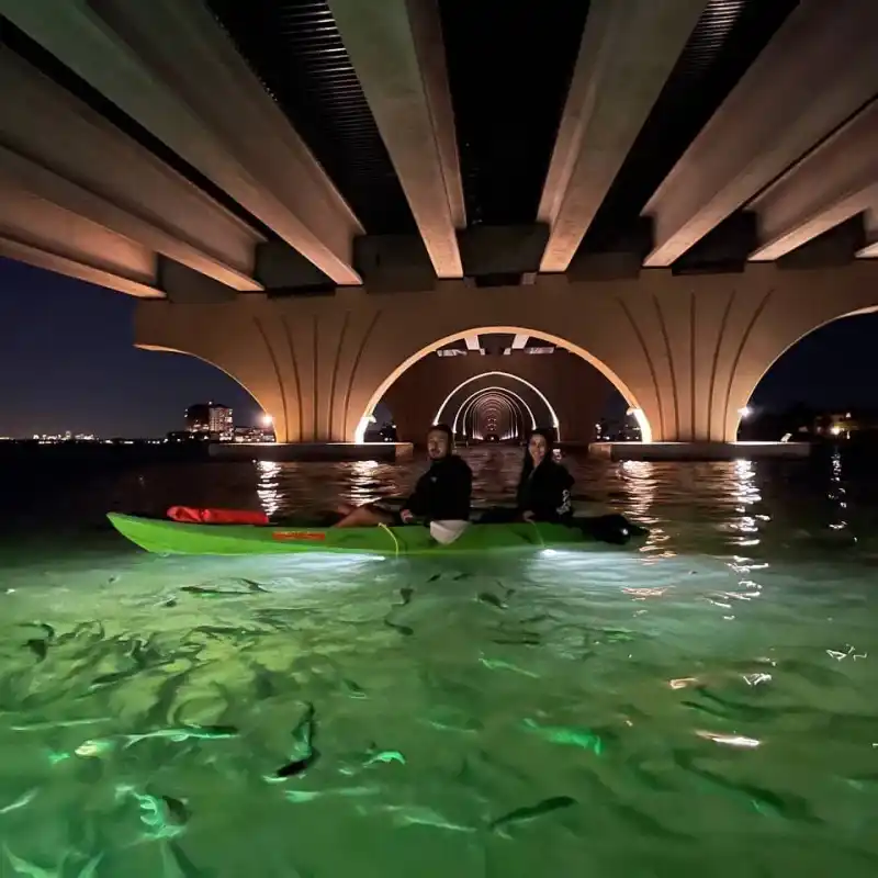 Our signature products are the Daytime Island & Mangrove Tunnel Adventures where we often see Dolphins and Manatees and our Glass Bottom Kayak LED illuminated fish feeding Night Tours where we use high powered underwater LED lights to illuminate the sea floor and attract sea-life. We also feed fish on our LED night tours and we’ve trained them to follow us at some locations making you feel like a “fish whisperer” while exploring under the stars with friends, family, or someone special.